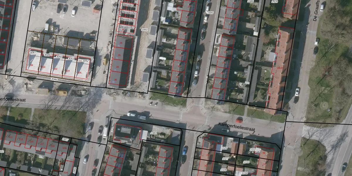 Het perceel waarop M.D.de Grootstraat 33 staat heeft een oppervlakte van 2636 m². Dit is een zeer groot perceel. De perceeloppervlakte wordt geregistreerd door het Kadaster. Gedetailleerde informatie over de maten van dit perceel kunt u vinden in het rapport Kadastrale kaart met maatvoering van M.D.de Grootstraat 33.
