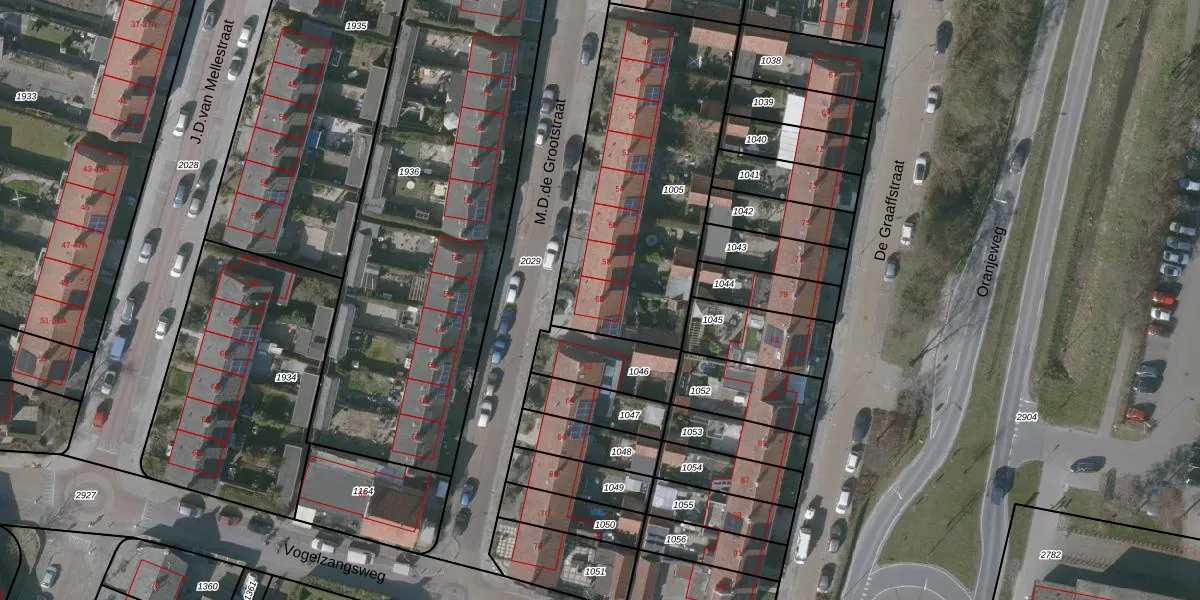 Het perceel waarop M.D.de Grootstraat 60 staat heeft een oppervlakte van 1215 m². Dit is een zeer groot perceel. De perceeloppervlakte wordt geregistreerd door het Kadaster. Gedetailleerde informatie over de maten van dit perceel kunt u vinden in het rapport Kadastrale kaart met maatvoering van M.D.de Grootstraat 60.