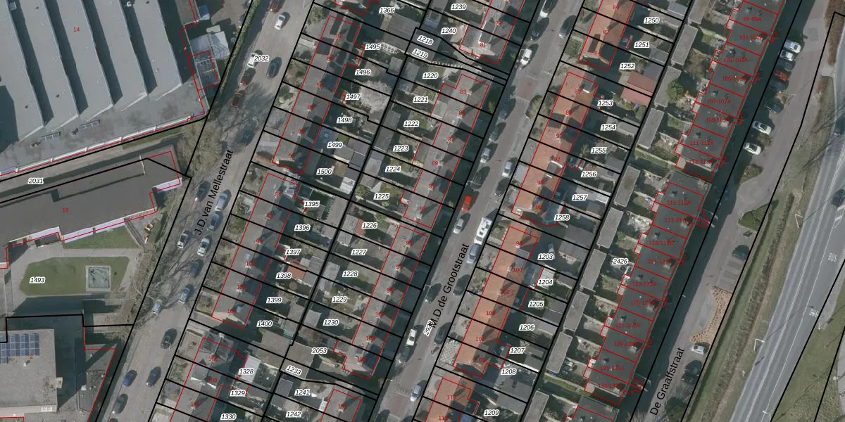 Gebruik de zoekbalk of klik op een perceel voor informatie over de adressen binnen dit perceel.