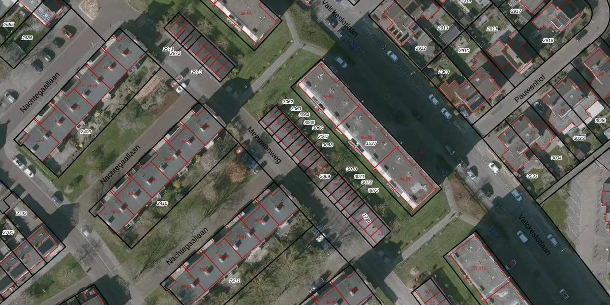 Het perceel waarop Meeuwenweg 28 staat heeft een oppervlakte van 24 m². Dit is een klein perceel. De perceeloppervlakte wordt geregistreerd door het Kadaster. Gedetailleerde informatie over de maten van dit perceel kunt u vinden in het rapport Kadastrale kaart met maatvoering van Meeuwenweg 28.