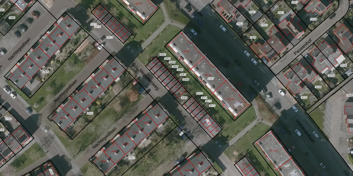Het perceel waarop Meeuwenweg 30 staat heeft een oppervlakte van 24 m². Dit is een klein perceel. De perceeloppervlakte wordt geregistreerd door het Kadaster. Gedetailleerde informatie over de maten van dit perceel kunt u vinden in het rapport Kadastrale kaart met maatvoering van Meeuwenweg 30.