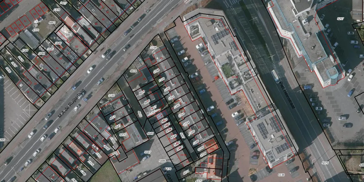 Gebruik de zoekbalk of klik op een perceel voor informatie over de adressen binnen dit perceel.