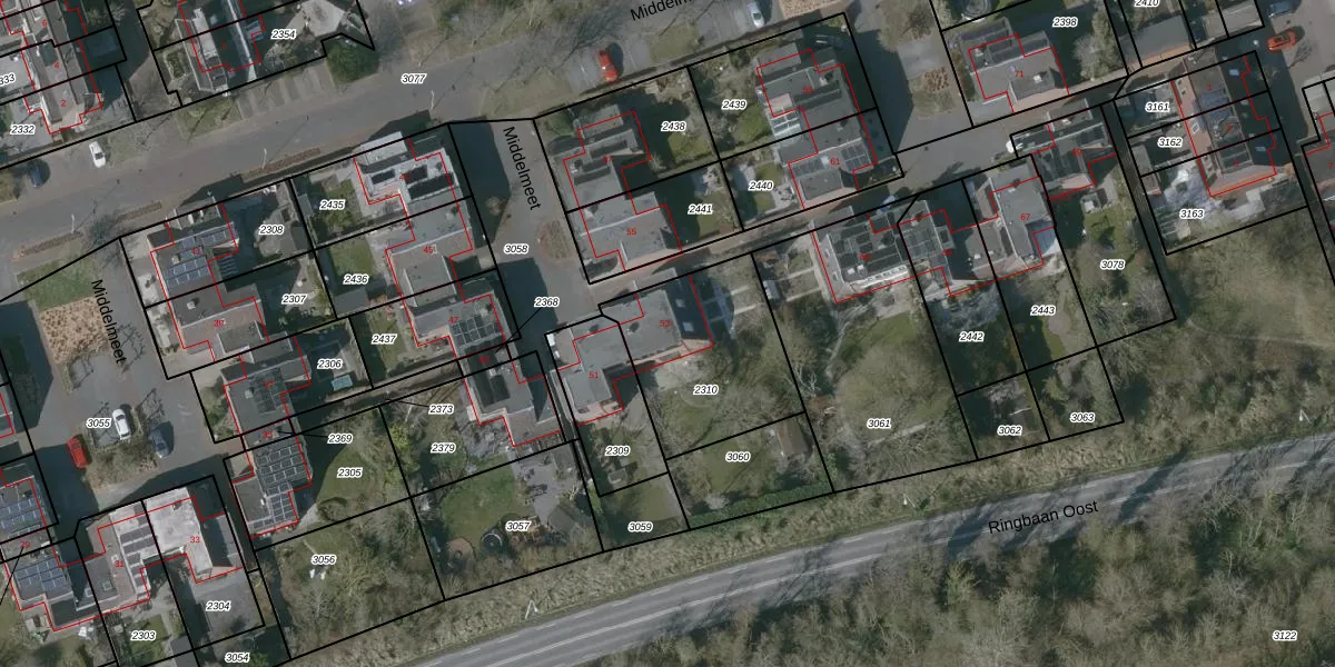 Middelmeet 53 is gelegen op kadastraal perceel GOE00B2310. Deze kadastrale aanduiding is uniek en wordt gebruikt door het Kadaster om eigendomsrechten en andere zakelijke rechten vast te leggen. Het perceel maakt onderdeel uit van de kadastrale gemeente Goes.