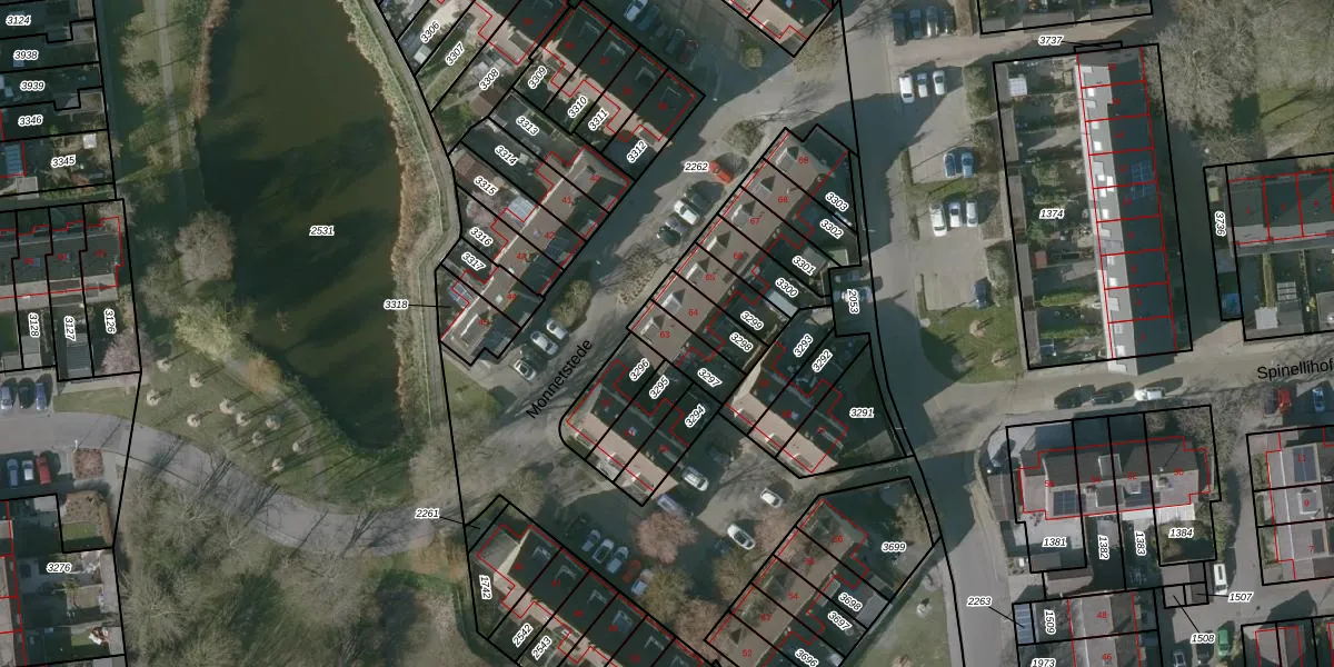 Het perceel waarop Monnetstede 63 staat heeft een oppervlakte van 106 m². Dit is een middelgroot perceel. De perceeloppervlakte wordt geregistreerd door het Kadaster. Gedetailleerde informatie over de maten van dit perceel kunt u vinden in het rapport Kadastrale kaart met maatvoering van Monnetstede 63.