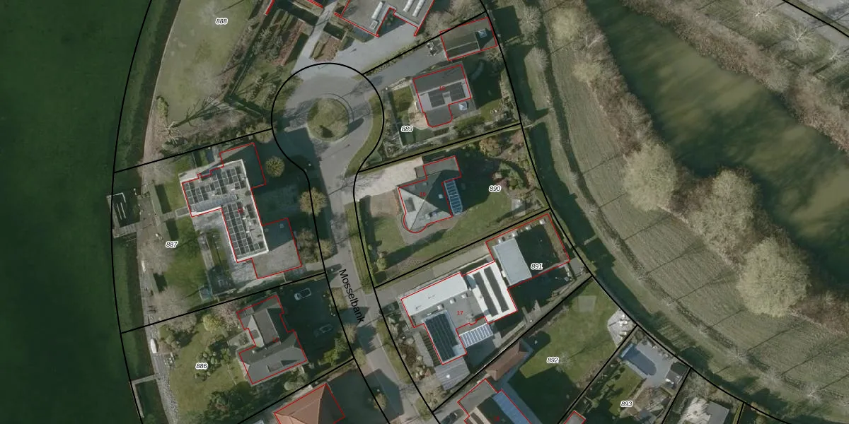Het perceel waarop Mosselbank 16 staat heeft een oppervlakte van 1055 m². Dit is een zeer groot perceel. De perceeloppervlakte wordt geregistreerd door het Kadaster. Gedetailleerde informatie over de maten van dit perceel kunt u vinden in het rapport Kadastrale kaart met maatvoering van Mosselbank 16.