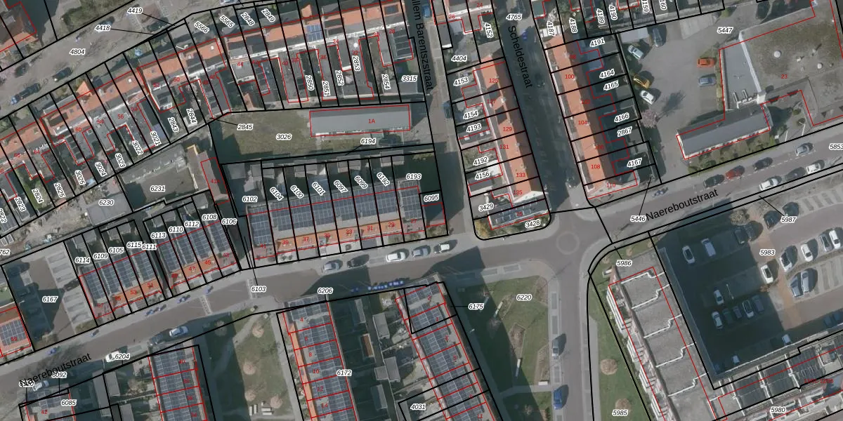 Het perceel waarop Naereboutstraat 27 staat heeft een oppervlakte van 159 m². Dit is een middelgroot perceel. De perceeloppervlakte wordt geregistreerd door het Kadaster. Gedetailleerde informatie over de maten van dit perceel kunt u vinden in het rapport Kadastrale kaart met maatvoering van Naereboutstraat 27.