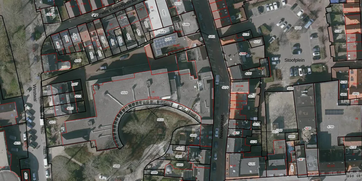 Het perceel waarop Nieuwstraat 8-03 staat heeft een oppervlakte van 3161 m². Dit is een zeer groot perceel. De perceeloppervlakte wordt geregistreerd door het Kadaster. Gedetailleerde informatie over de maten van dit perceel kunt u vinden in het rapport Kadastrale kaart met maatvoering van Nieuwstraat 8-03.