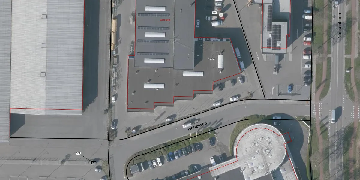 Het perceel waarop Nobelweg 2-20 staat heeft een oppervlakte van 7845 m². Dit is een zeer groot perceel. De perceeloppervlakte wordt geregistreerd door het Kadaster. Gedetailleerde informatie over de maten van dit perceel kunt u vinden in het rapport Kadastrale kaart met maatvoering van Nobelweg 2-20.