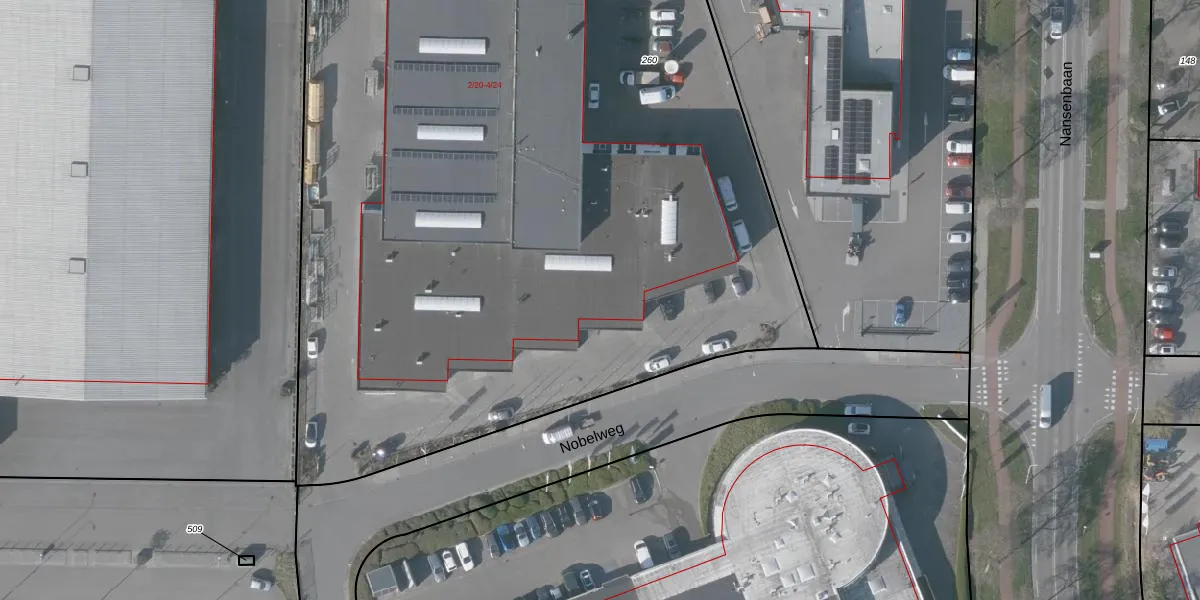 Het perceel waarop Nobelweg 2-22 staat heeft een oppervlakte van 7845 m². Dit is een zeer groot perceel. De perceeloppervlakte wordt geregistreerd door het Kadaster. Gedetailleerde informatie over de maten van dit perceel kunt u vinden in het rapport Kadastrale kaart met maatvoering van Nobelweg 2-22.