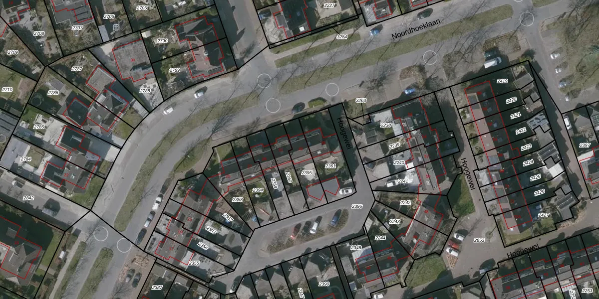 Noordhoeklaan 33 is gelegen op kadastraal perceel GOE00B2395. Deze kadastrale aanduiding is uniek en wordt gebruikt door het Kadaster om eigendomsrechten en andere zakelijke rechten vast te leggen. Het perceel maakt onderdeel uit van de kadastrale gemeente Goes.