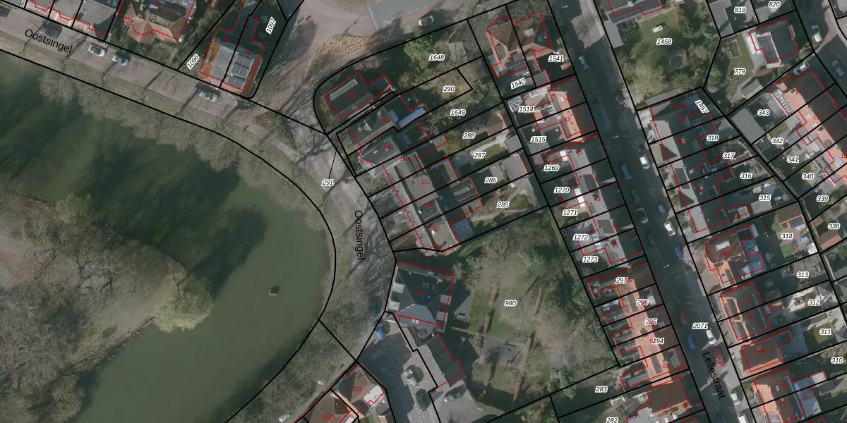 Gebruik de zoekbalk of klik op een perceel voor informatie over de adressen binnen dit perceel.
