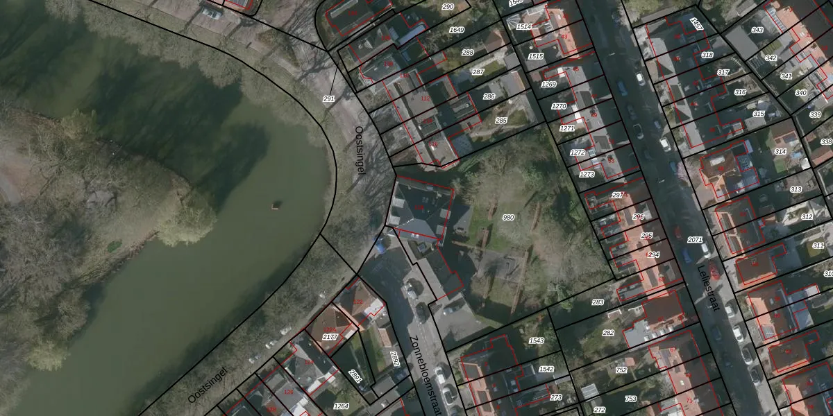 Het perceel waarop Oostsingel 118 staat heeft een oppervlakte van 1822 m². Dit is een zeer groot perceel. De perceeloppervlakte wordt geregistreerd door het Kadaster. Gedetailleerde informatie over de maten van dit perceel kunt u vinden in het rapport Kadastrale kaart met maatvoering van Oostsingel 118.