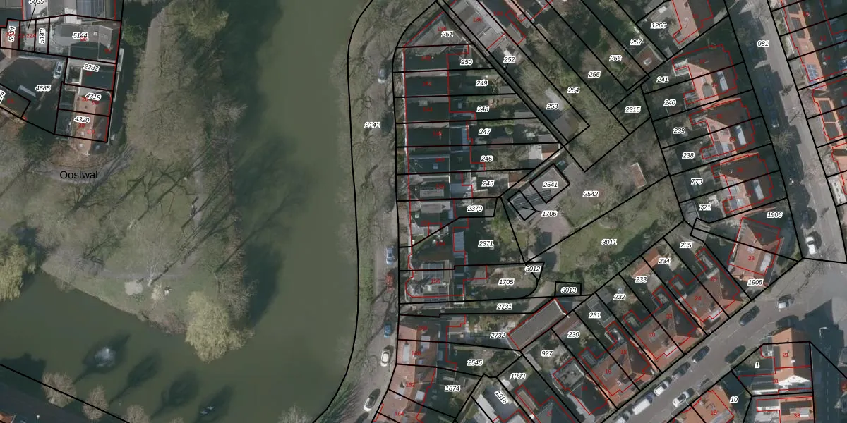 Gebruik de zoekbalk of klik op een perceel voor informatie over de adressen binnen dit perceel.