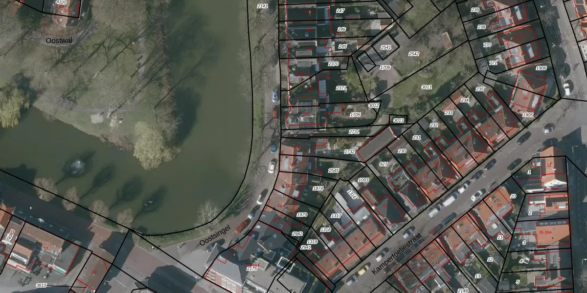 Gebruik de zoekbalk of klik op een perceel voor informatie over de adressen binnen dit perceel.