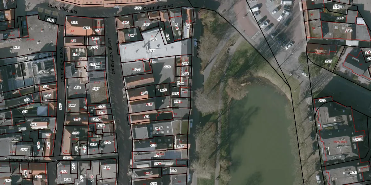 Het perceel waarop Oostwal 49 staat heeft een oppervlakte van 68 m². Dit is een klein perceel. De perceeloppervlakte wordt geregistreerd door het Kadaster. Gedetailleerde informatie over de maten van dit perceel kunt u vinden in het rapport Kadastrale kaart met maatvoering van Oostwal 49.