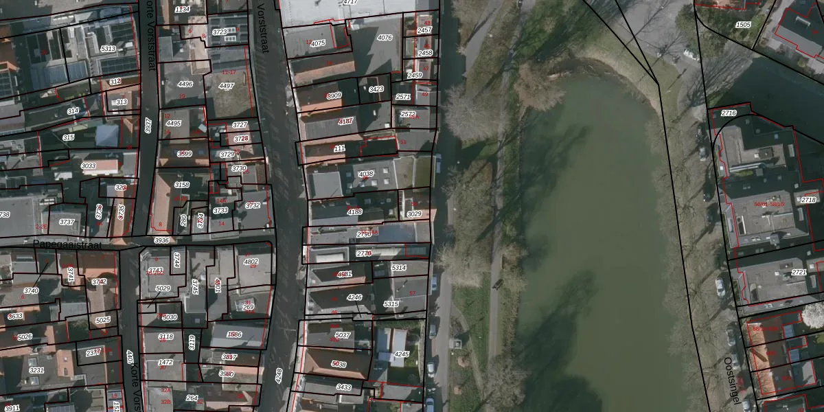 Het perceel waarop Oostwal 55 staat heeft een oppervlakte van 61 m². Dit is een klein perceel. De perceeloppervlakte wordt geregistreerd door het Kadaster. Gedetailleerde informatie over de maten van dit perceel kunt u vinden in het rapport Kadastrale kaart met maatvoering van Oostwal 55.