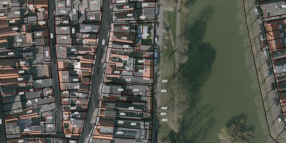 Gebruik de zoekbalk of klik op een perceel voor informatie over de adressen binnen dit perceel.