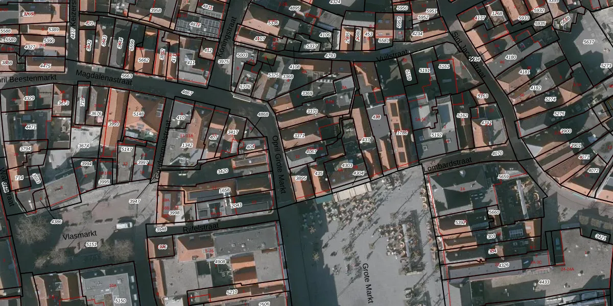 Opril Grote Markt 12-A is gelegen op kadastraal perceel GOE00D4067. Deze kadastrale aanduiding is uniek en wordt gebruikt door het Kadaster om eigendomsrechten en andere zakelijke rechten vast te leggen. Het perceel maakt onderdeel uit van de kadastrale gemeente Goes.