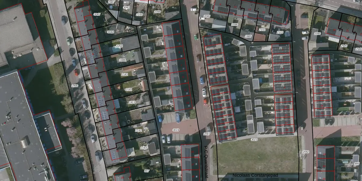 Het perceel waarop P.C.Quantstraat 11 staat heeft een oppervlakte van 2857 m². Dit is een zeer groot perceel. De perceeloppervlakte wordt geregistreerd door het Kadaster. Gedetailleerde informatie over de maten van dit perceel kunt u vinden in het rapport Kadastrale kaart met maatvoering van P.C.Quantstraat 11.