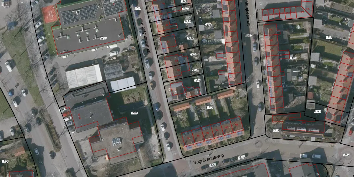 Het perceel waarop P.C.Quantstraat 58 staat heeft een oppervlakte van 281 m². Dit is een middelgroot perceel. De perceeloppervlakte wordt geregistreerd door het Kadaster. Gedetailleerde informatie over de maten van dit perceel kunt u vinden in het rapport Kadastrale kaart met maatvoering van P.C.Quantstraat 58.
