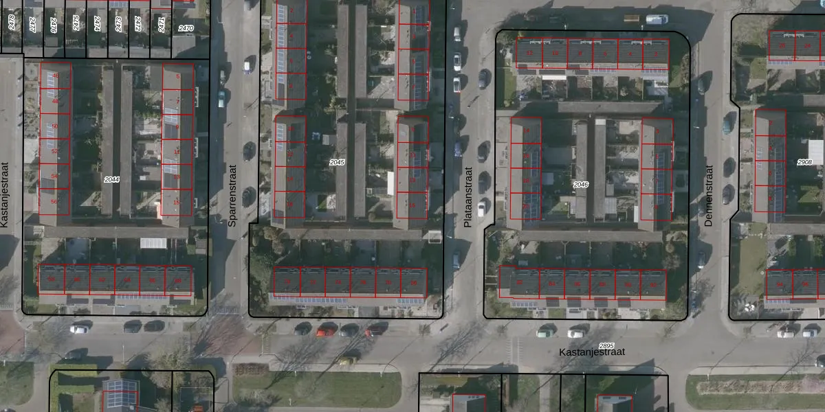 Plataanstraat 15 is gelegen op kadastraal perceel GOE00E2045. Deze kadastrale aanduiding is uniek en wordt gebruikt door het Kadaster om eigendomsrechten en andere zakelijke rechten vast te leggen. Het perceel maakt onderdeel uit van de kadastrale gemeente Goes.