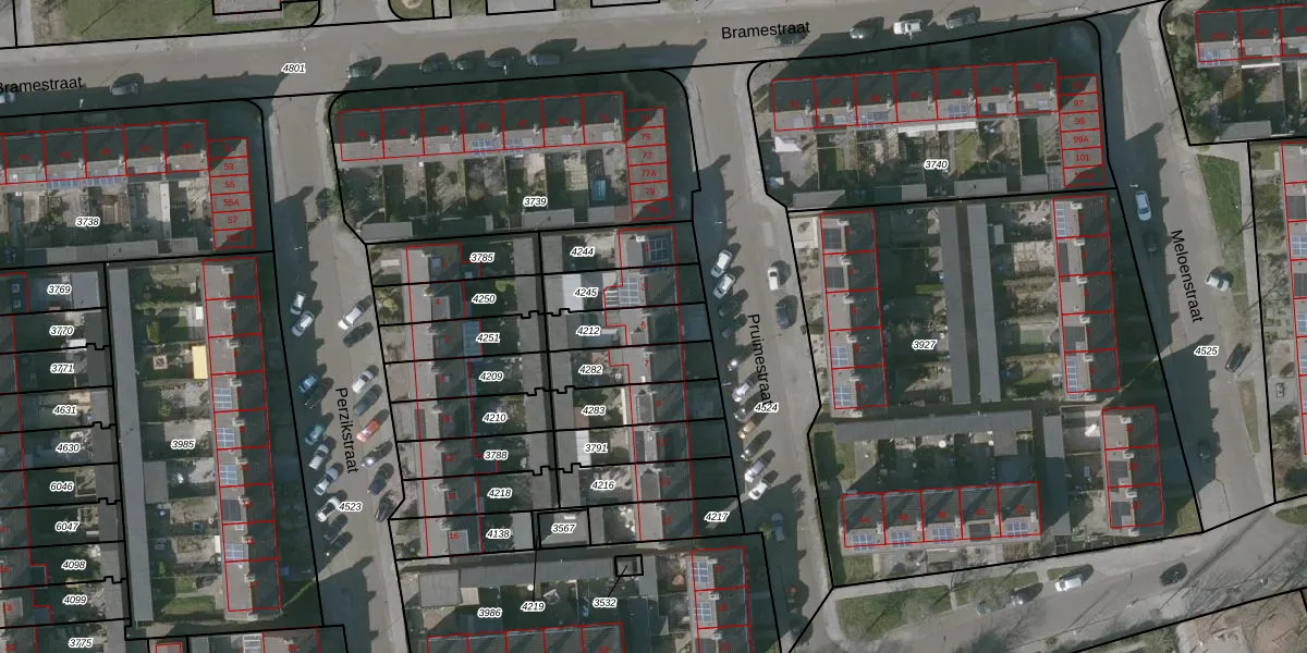 Het perceel waarop Pruimestraat 5 staat heeft een oppervlakte van 147 m². Dit is een middelgroot perceel. De perceeloppervlakte wordt geregistreerd door het Kadaster. Gedetailleerde informatie over de maten van dit perceel kunt u vinden in het rapport Kadastrale kaart met maatvoering van Pruimestraat 5.