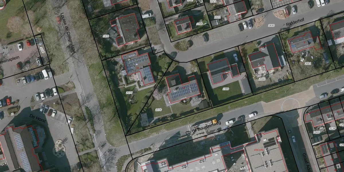 Gebruik de zoekbalk of klik op een perceel voor informatie over de adressen binnen dit perceel.