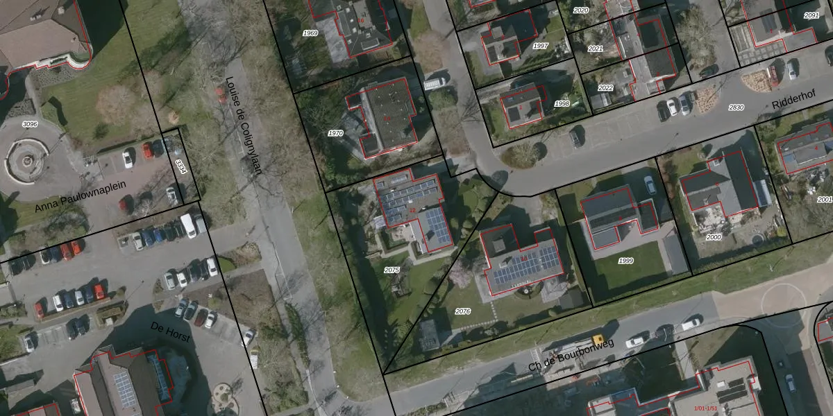 Gebruik de zoekbalk of klik op een perceel voor informatie over de adressen binnen dit perceel.