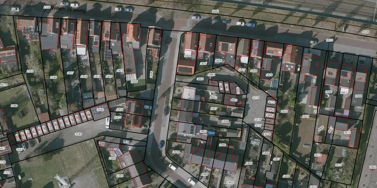 Gebruik de zoekbalk of klik op een perceel voor informatie over de adressen binnen dit perceel.