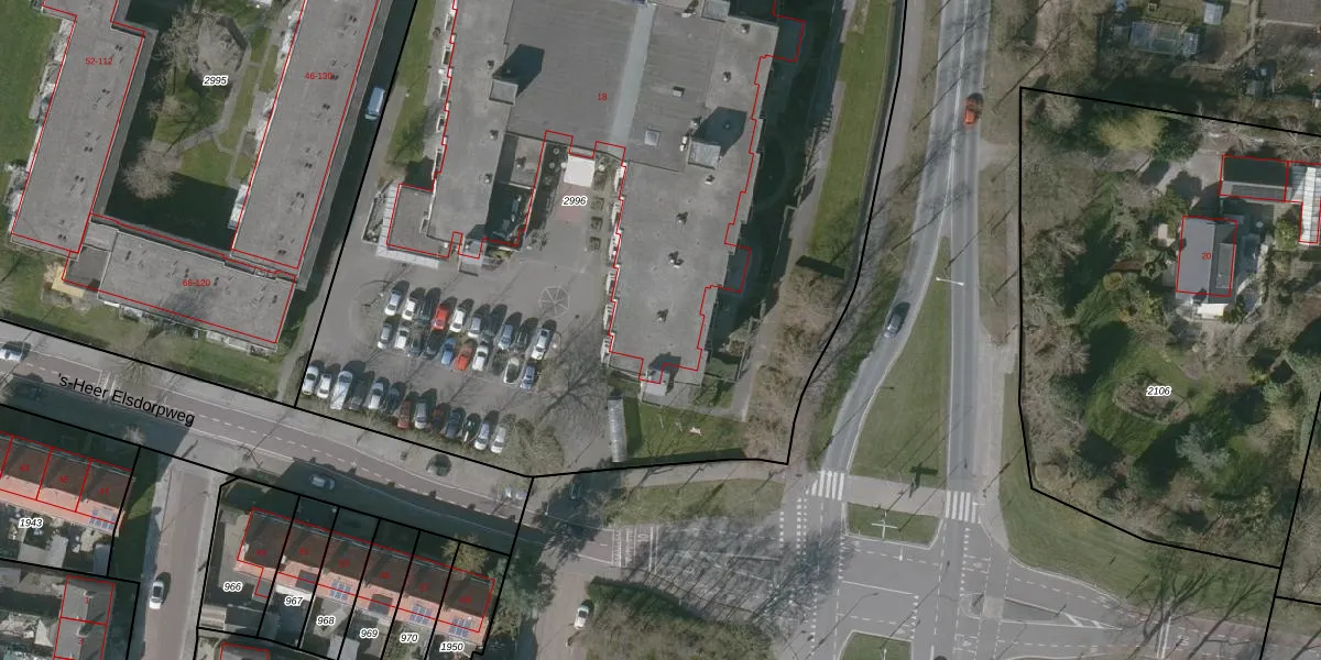 Het perceel waarop 's-Heer Elsdorpweg 18 staat heeft een oppervlakte van 9150 m². Dit is een zeer groot perceel. De perceeloppervlakte wordt geregistreerd door het Kadaster. Gedetailleerde informatie over de maten van dit perceel kunt u vinden in het rapport Kadastrale kaart met maatvoering van 's-Heer Elsdorpweg 18.