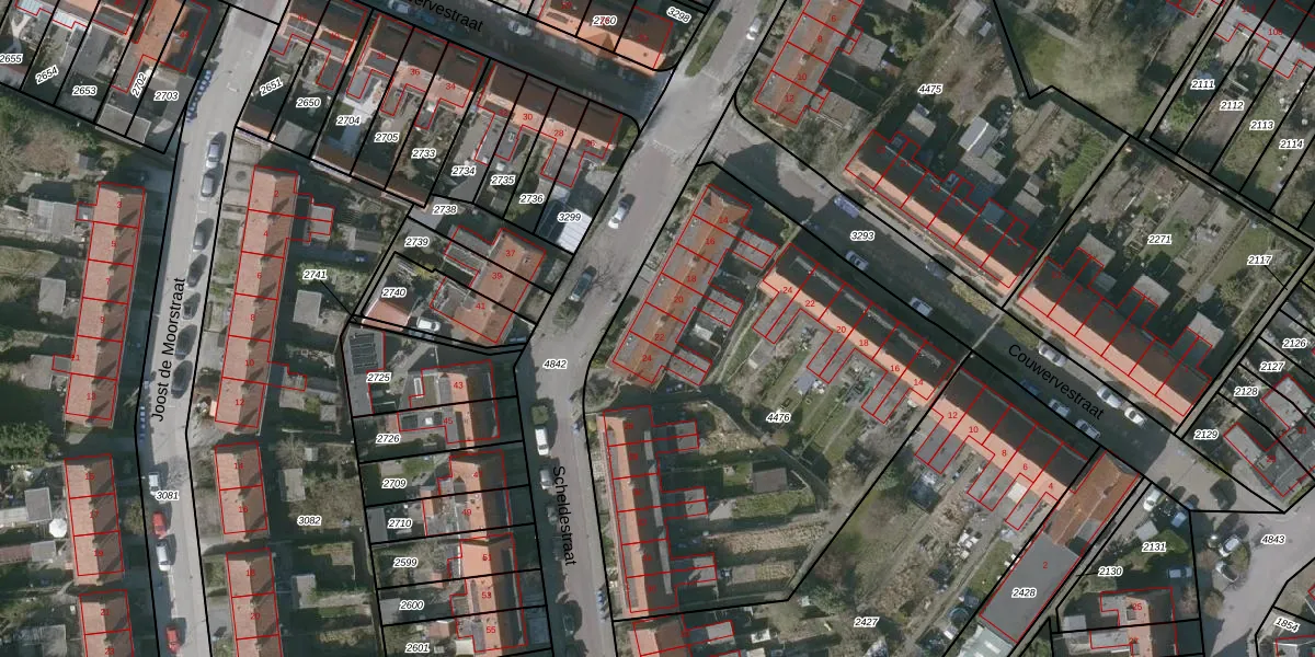 Het perceel waarop Scheldestraat 22 staat heeft een oppervlakte van 2540 m². Dit is een zeer groot perceel. De perceeloppervlakte wordt geregistreerd door het Kadaster. Gedetailleerde informatie over de maten van dit perceel kunt u vinden in het rapport Kadastrale kaart met maatvoering van Scheldestraat 22.
