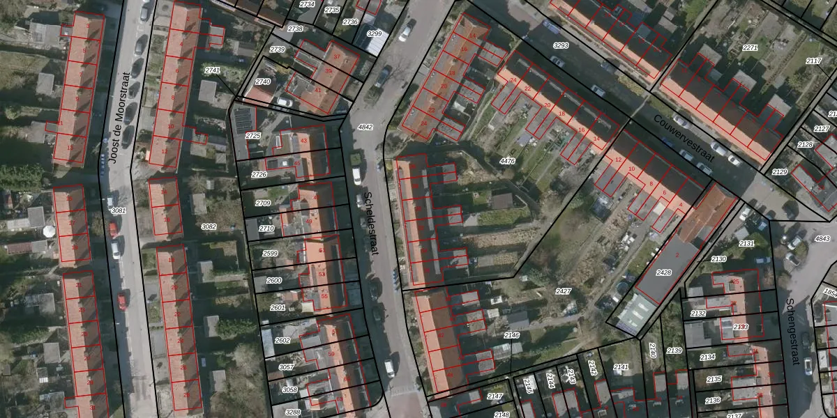 Het perceel waarop Scheldestraat 30 staat heeft een oppervlakte van 2540 m². Dit is een zeer groot perceel. De perceeloppervlakte wordt geregistreerd door het Kadaster. Gedetailleerde informatie over de maten van dit perceel kunt u vinden in het rapport Kadastrale kaart met maatvoering van Scheldestraat 30.