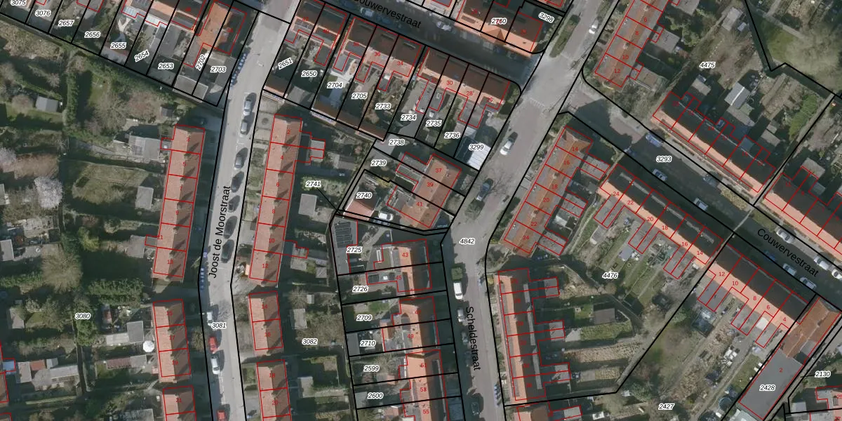 Gebruik de zoekbalk of klik op een perceel voor informatie over de adressen binnen dit perceel.