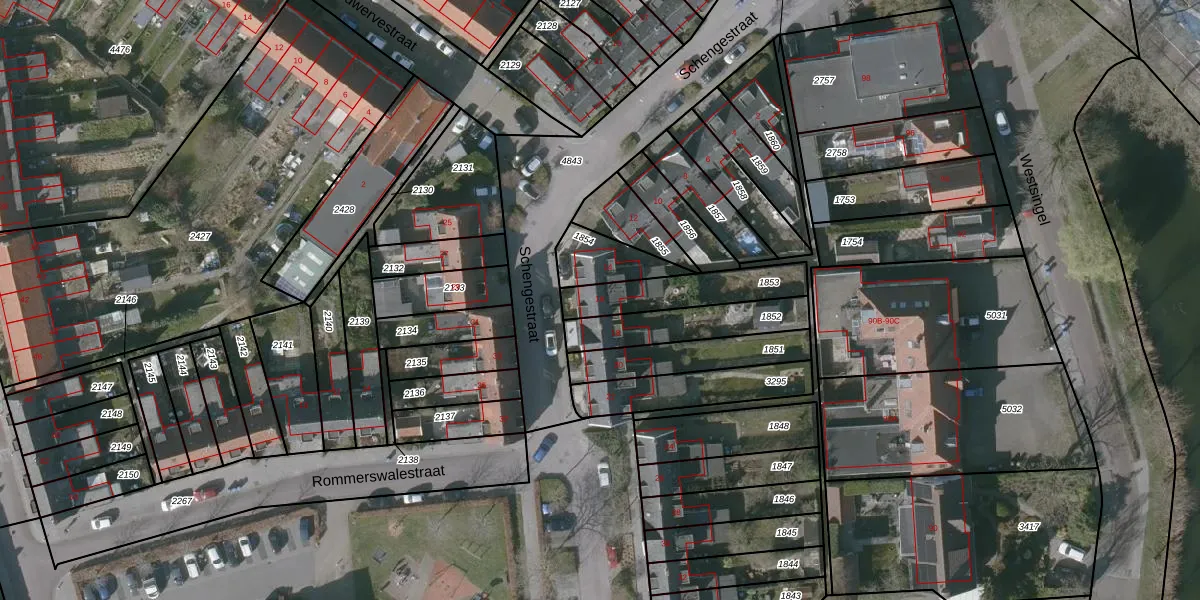 Schengestraat 16 is gelegen op kadastraal perceel GOE00C1853. Deze kadastrale aanduiding is uniek en wordt gebruikt door het Kadaster om eigendomsrechten en andere zakelijke rechten vast te leggen. Het perceel maakt onderdeel uit van de kadastrale gemeente Goes.