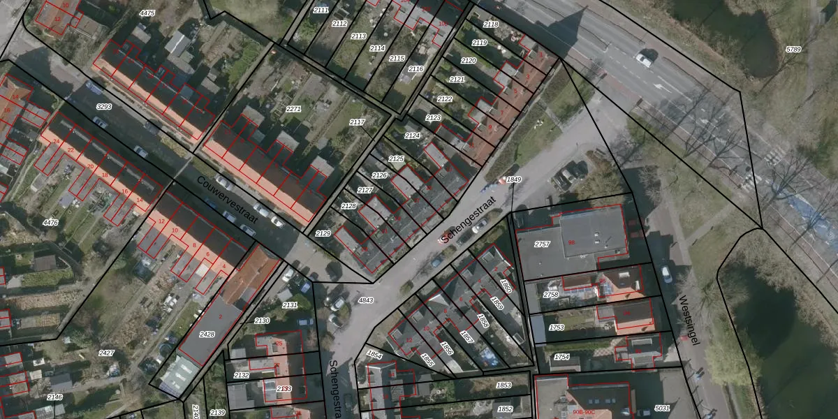 Gebruik de zoekbalk of klik op een perceel voor informatie over de adressen binnen dit perceel.