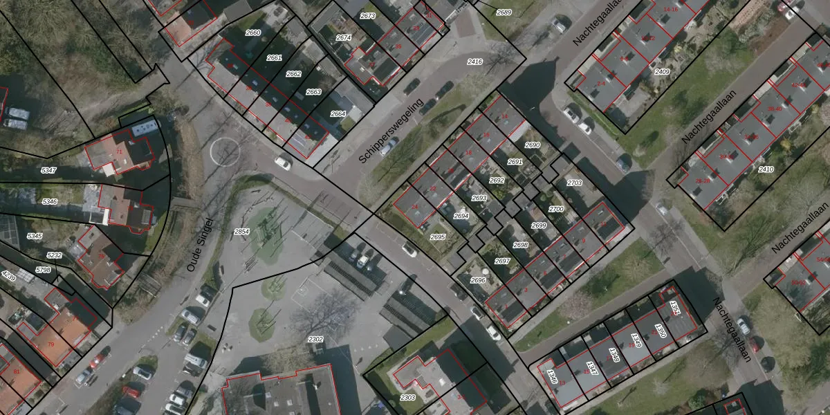 Gebruik de zoekbalk of klik op een perceel voor informatie over de adressen binnen dit perceel.