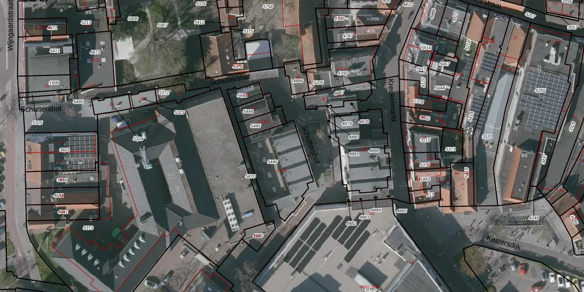 Schuttershof 19 is gelegen op kadastraal perceel GOE00D5446. Deze kadastrale aanduiding is uniek en wordt gebruikt door het Kadaster om eigendomsrechten en andere zakelijke rechten vast te leggen. Het perceel maakt onderdeel uit van de kadastrale gemeente Goes.