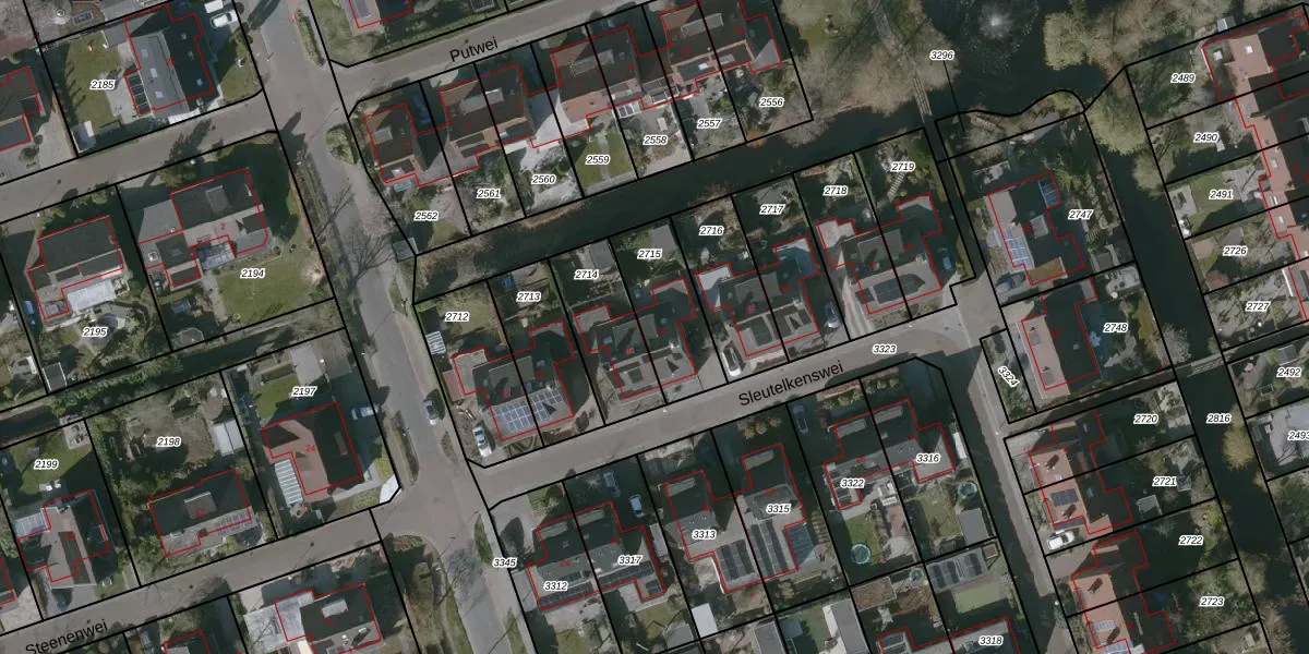 Gebruik de zoekbalk of klik op een perceel voor informatie over de adressen binnen dit perceel.