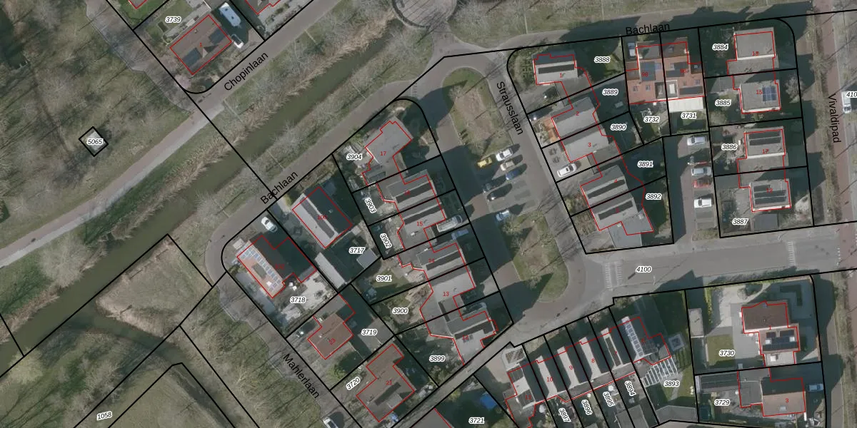 Het perceel waarop Strausslaan 15 staat heeft een oppervlakte van 192 m². Dit is een middelgroot perceel. De perceeloppervlakte wordt geregistreerd door het Kadaster. Gedetailleerde informatie over de maten van dit perceel kunt u vinden in het rapport Kadastrale kaart met maatvoering van Strausslaan 15.