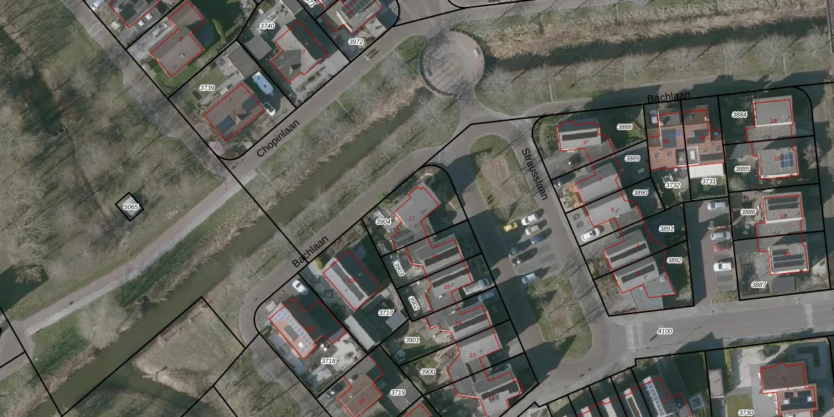 Het perceel waarop Strausslaan 17 staat heeft een oppervlakte van 314 m². Dit is een groot perceel. De perceeloppervlakte wordt geregistreerd door het Kadaster. Gedetailleerde informatie over de maten van dit perceel kunt u vinden in het rapport Kadastrale kaart met maatvoering van Strausslaan 17.