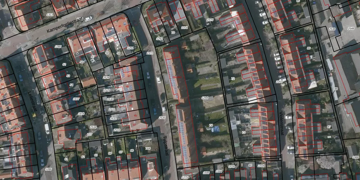 Het perceel waarop Tulpstraat 52-A staat heeft een oppervlakte van 2291 m². Dit is een zeer groot perceel. De perceeloppervlakte wordt geregistreerd door het Kadaster. Gedetailleerde informatie over de maten van dit perceel kunt u vinden in het rapport Kadastrale kaart met maatvoering van Tulpstraat 52-A.