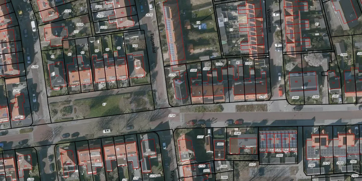 Het perceel waarop Tulpstraat 66 staat heeft een oppervlakte van 270 m². Dit is een middelgroot perceel. De perceeloppervlakte wordt geregistreerd door het Kadaster. Gedetailleerde informatie over de maten van dit perceel kunt u vinden in het rapport Kadastrale kaart met maatvoering van Tulpstraat 66.
