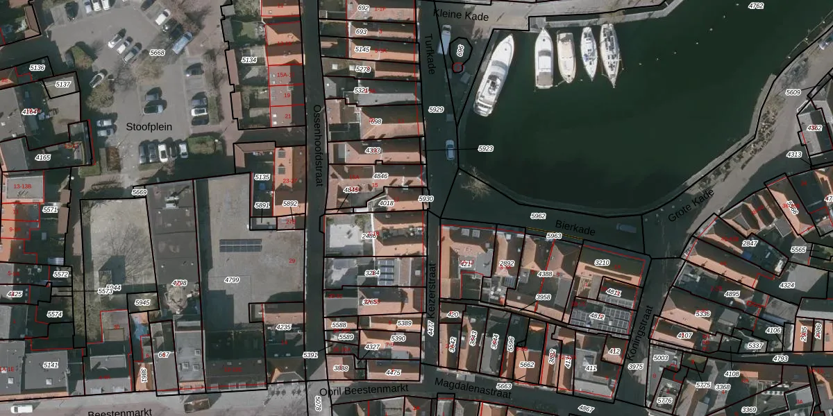 Turfkade 19 is gelegen op kadastraal perceel GOE00D4018. Deze kadastrale aanduiding is uniek en wordt gebruikt door het Kadaster om eigendomsrechten en andere zakelijke rechten vast te leggen. Het perceel maakt onderdeel uit van de kadastrale gemeente Goes.