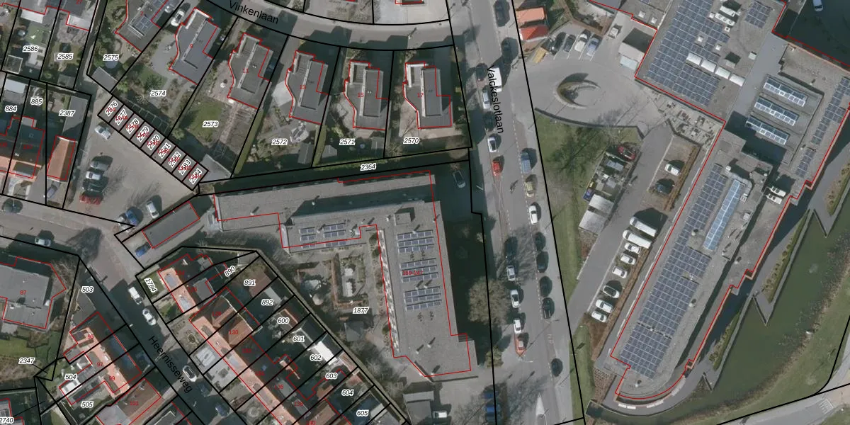 Het perceel waarop Valckeslotlaan 201 staat heeft een oppervlakte van 2860 m². Dit is een zeer groot perceel. De perceeloppervlakte wordt geregistreerd door het Kadaster. Gedetailleerde informatie over de maten van dit perceel kunt u vinden in het rapport Kadastrale kaart met maatvoering van Valckeslotlaan 201.