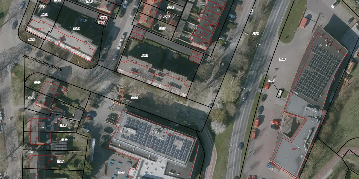 Het perceel waarop van Dusseldorpstraat 150 staat heeft een oppervlakte van 1130 m². Dit is een zeer groot perceel. De perceeloppervlakte wordt geregistreerd door het Kadaster. Gedetailleerde informatie over de maten van dit perceel kunt u vinden in het rapport Kadastrale kaart met maatvoering van van Dusseldorpstraat 150.