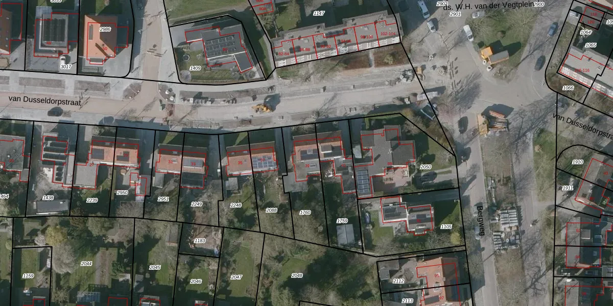Het perceel waarop van Dusseldorpstraat 39 staat heeft een oppervlakte van 429 m². Dit is een groot perceel. De perceeloppervlakte wordt geregistreerd door het Kadaster. Gedetailleerde informatie over de maten van dit perceel kunt u vinden in het rapport Kadastrale kaart met maatvoering van van Dusseldorpstraat 39.