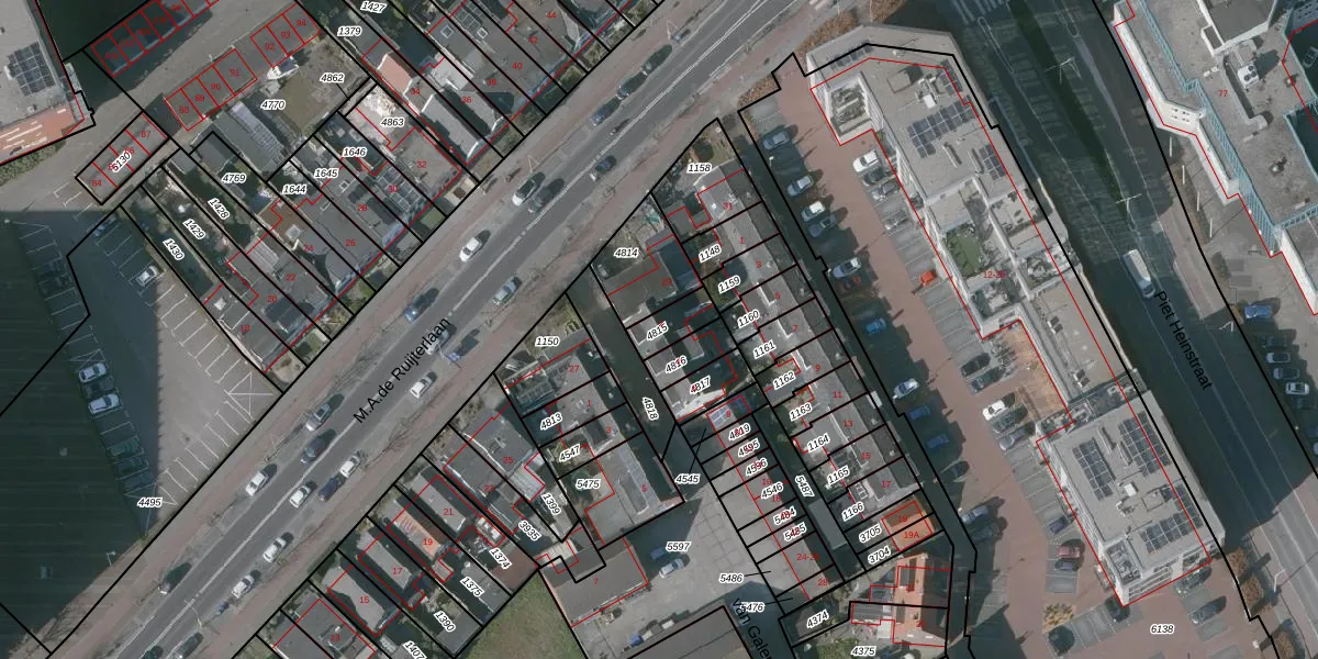 Gebruik de zoekbalk of klik op een perceel voor informatie over de adressen binnen dit perceel.