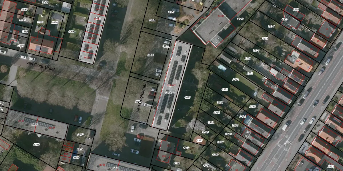 van Goghstraat 117 is gelegen op kadastraal perceel GOE00E3828. Deze kadastrale aanduiding is uniek en wordt gebruikt door het Kadaster om eigendomsrechten en andere zakelijke rechten vast te leggen. Het perceel maakt onderdeel uit van de kadastrale gemeente Goes.