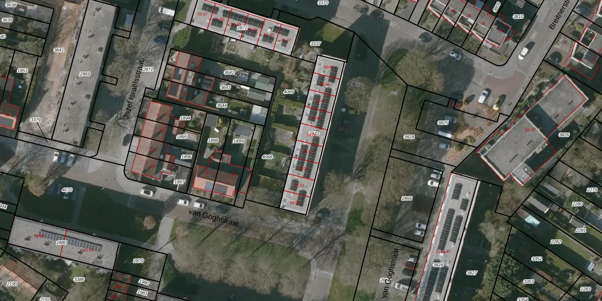 van Goghstraat 32 is gelegen op kadastraal perceel GOE00E2873. Deze kadastrale aanduiding is uniek en wordt gebruikt door het Kadaster om eigendomsrechten en andere zakelijke rechten vast te leggen. Het perceel maakt onderdeel uit van de kadastrale gemeente Goes.