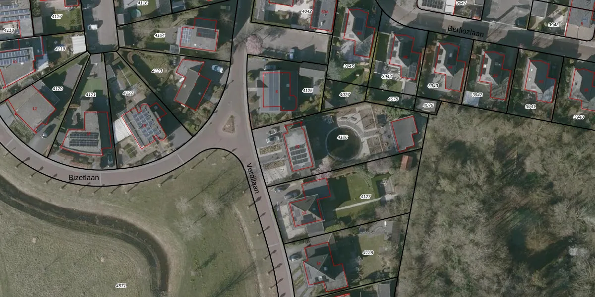 Gebruik de zoekbalk of klik op een perceel voor informatie over de adressen binnen dit perceel.